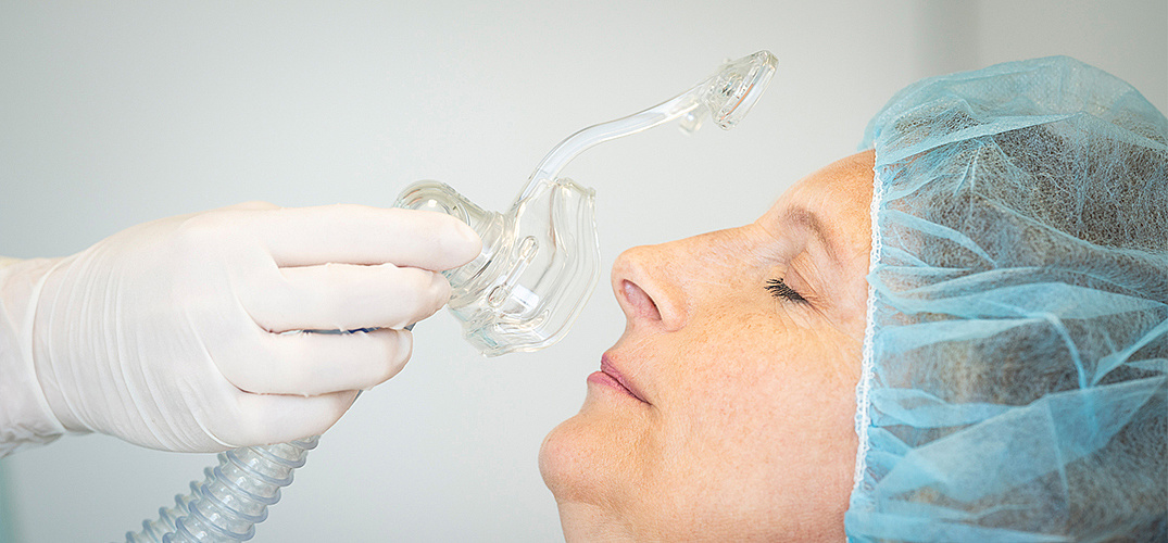 Im Zuge einer begleitenden Lachgas-Sedierung (=beruhigende Maßnahme) atmet der Patient über eine kleine Nasenmaske ein Gemisch aus Sauerstoff und Lachgas ein. Dabei wird ein angenehm wohliger Entspannungszustand erreicht, in dem eine angstfreie und entspannte Behandlung möglich ist. Auch ein eventueller Würgereiz wird reduziert oder sogar ausgeschaltet. Gleichzeitig behält der Patient sein Bewusstsein.