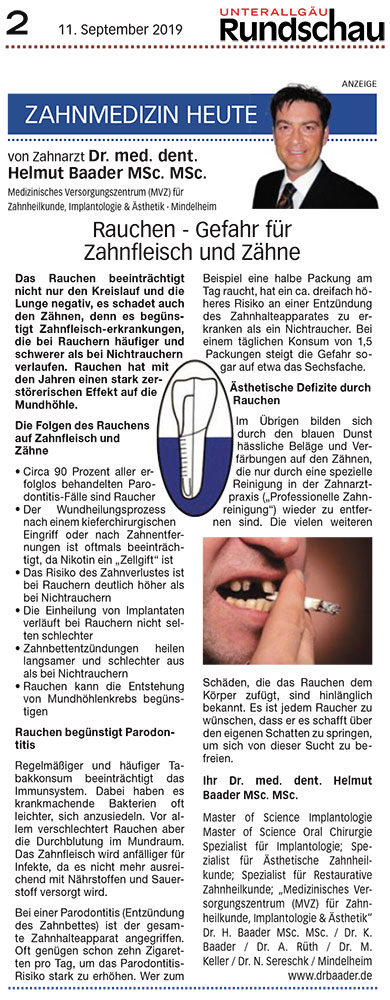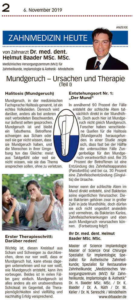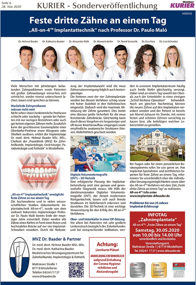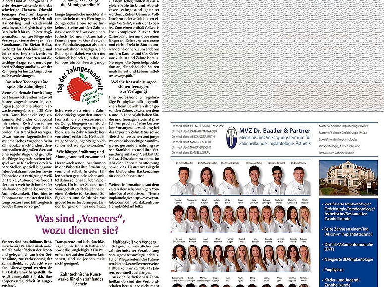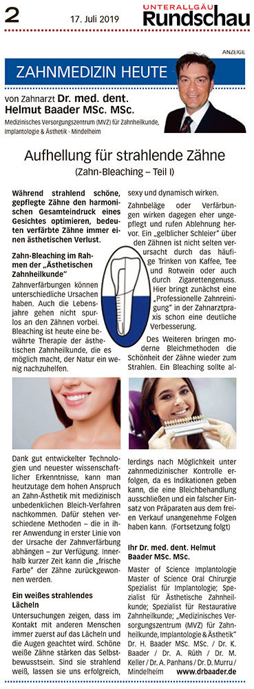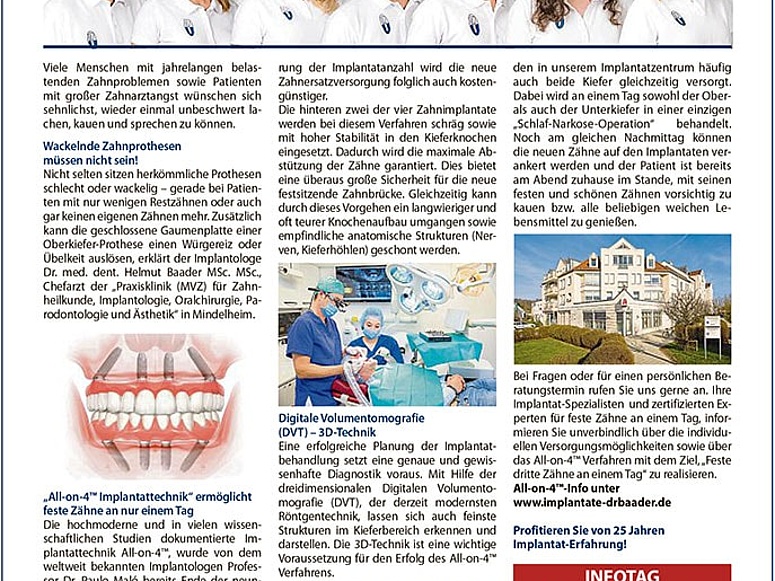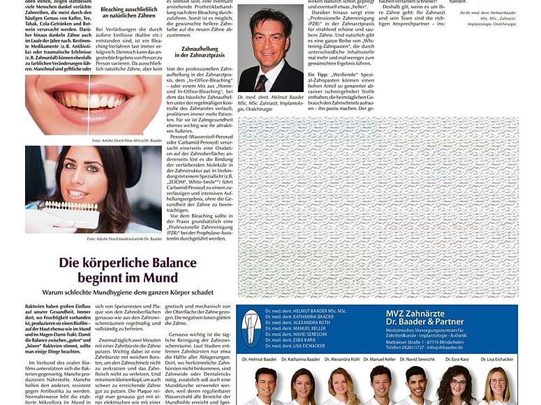 Bei Dr. Baader & Kollegen halten wir unsere Patientinnen und Patienten gerne up-to-date. In unserem Newsbereich erfahren SieNeuigkeiten aus der Dentalwelt und unserer Mindelheimer Zahnarztpraxis. Bleiben Sie mit uns auf dem Laufenden!