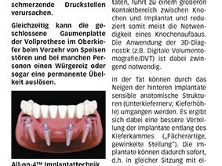 Zahnmedizin Heute: Feste dritte Zähne an einem Tag (All-on-4™ Implantattechnik) Teil V