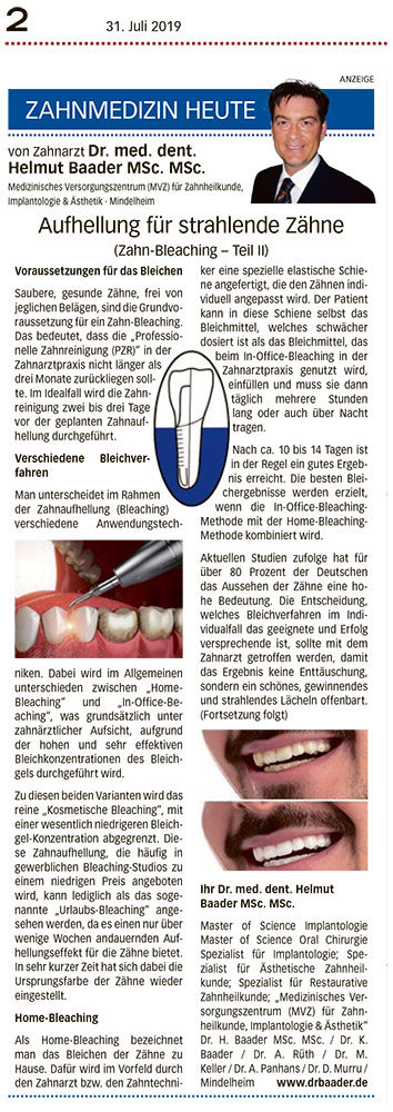 Zahnmedizin Heute: Aufhellung für strahlende Zähne (Zahn-Bleaching – Teil III)