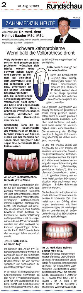 Zahnmedizin Heute: Feste dritte Zähne an einem Tag (All-on-4™ Implantattechnik) Teil VII