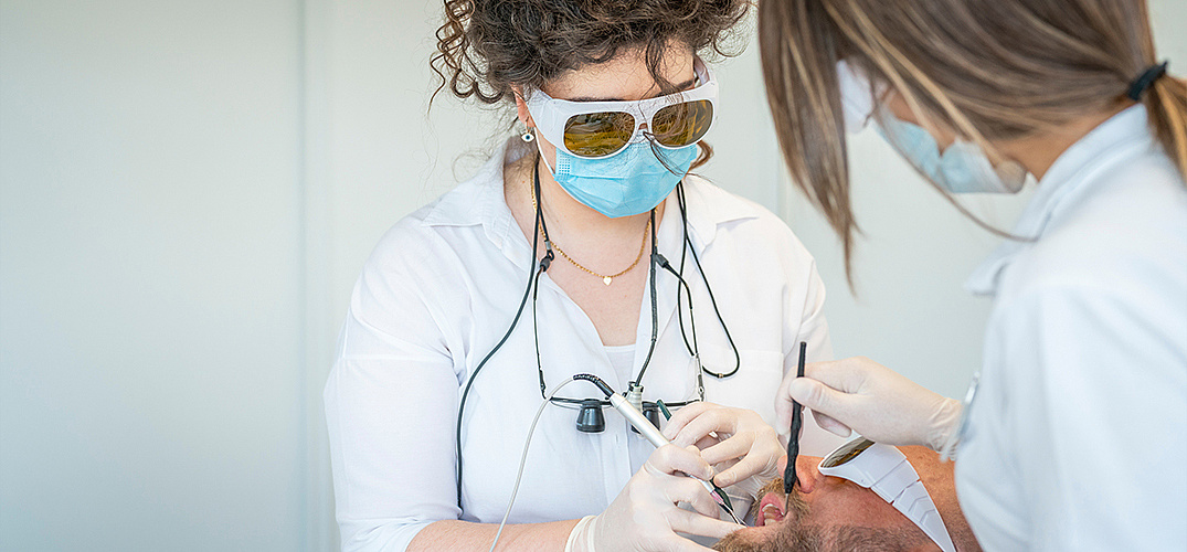 Die Photoaktivierte Therapie im Rahmen der Wurzelkanal- und Parodontitis-Behandlung wirkt desinfizierend und somit effektiv gegen krankmachende Keime im Gewebe.